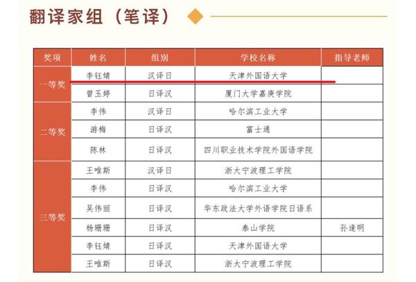 此次比赛中,学院共有10余名教师及同学从众多优秀翻译人才中脱颖而出,指导教师李钰婧在专注于学生学业成长的同时,积极参加比赛,获得了翻译家组(笔译)汉译日一等奖和日译汉三等奖的优异成绩。